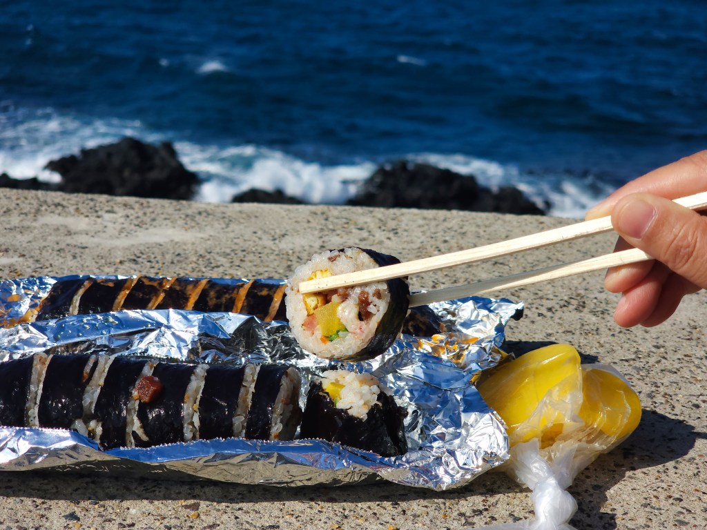 - 💡 My K-Friend Tip: This is the perfect “on-the-go” meal. Grab a box of gimbap and a Jeonbok Jumeokbap (Abalone Rice Ball) and take it to the beach for a delicious picnic!