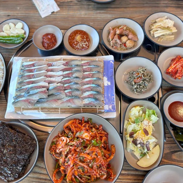 - 💡 My K-Friend Tip: The mackerel sashimi is served with seasoned rice and seaweed, so you can make your own little sushi rolls. If you’re not ready for raw fish, their Galchiguk (Hairtail Soup) is also a local delicacy.