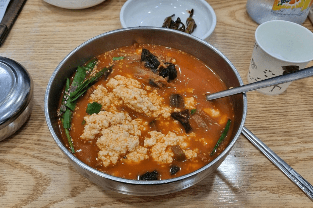 Gyeongpo Beach in Gangneung is one of Korea’s most famous beaches, known for its vast sandy shore and the picturesque Gyeongpo Lake nearby. After a refreshing dip, tantalize your taste buds at Gangneung Donghwa Garden. This renowned spot is famous for its spicy tofu stew (Sundubu Jjigae), a local specialty that’s both comforting and flavorful.