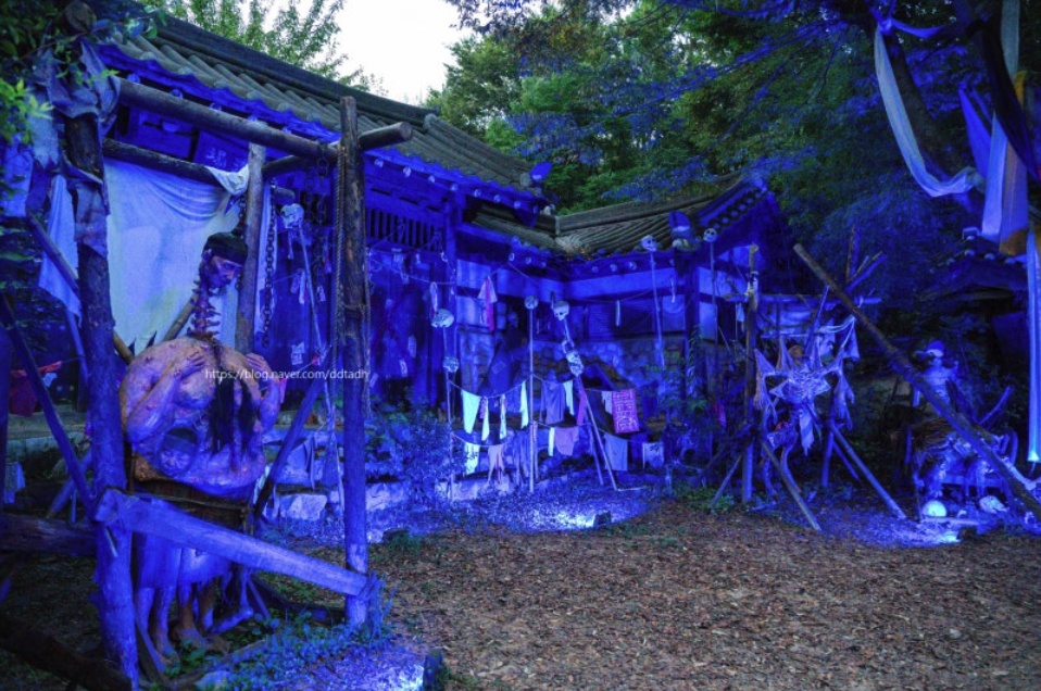 By day, the Korean Folk Village is a peaceful place to explore beautiful Hanok (traditional houses). But when the sun goes down… everything changes. 🌑