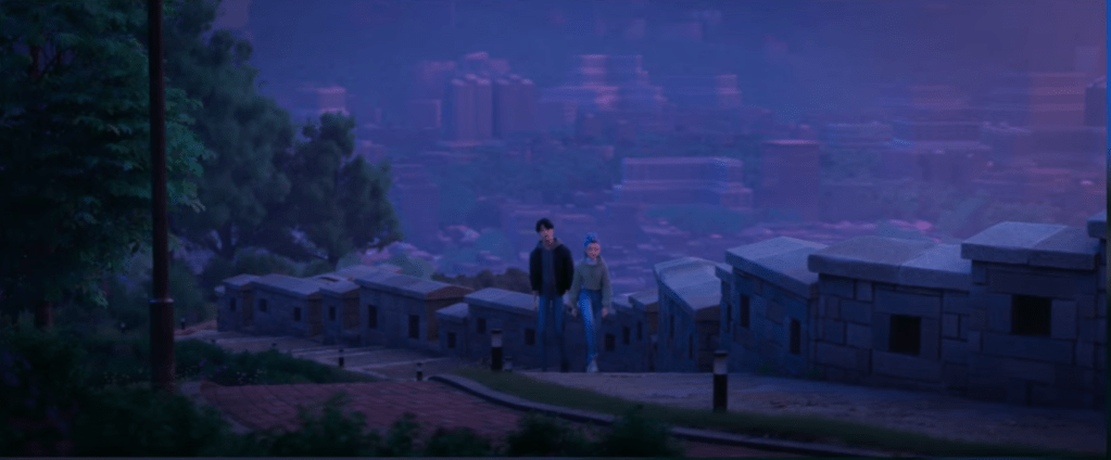 Ah, this scene. When Rumi and Jinu are hiding out, talking about their true feelings, and then sing “Free” on that hanok rooftop… it gives me chills! 😭 This is that magical place!