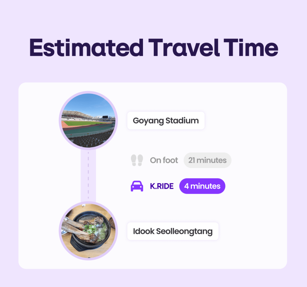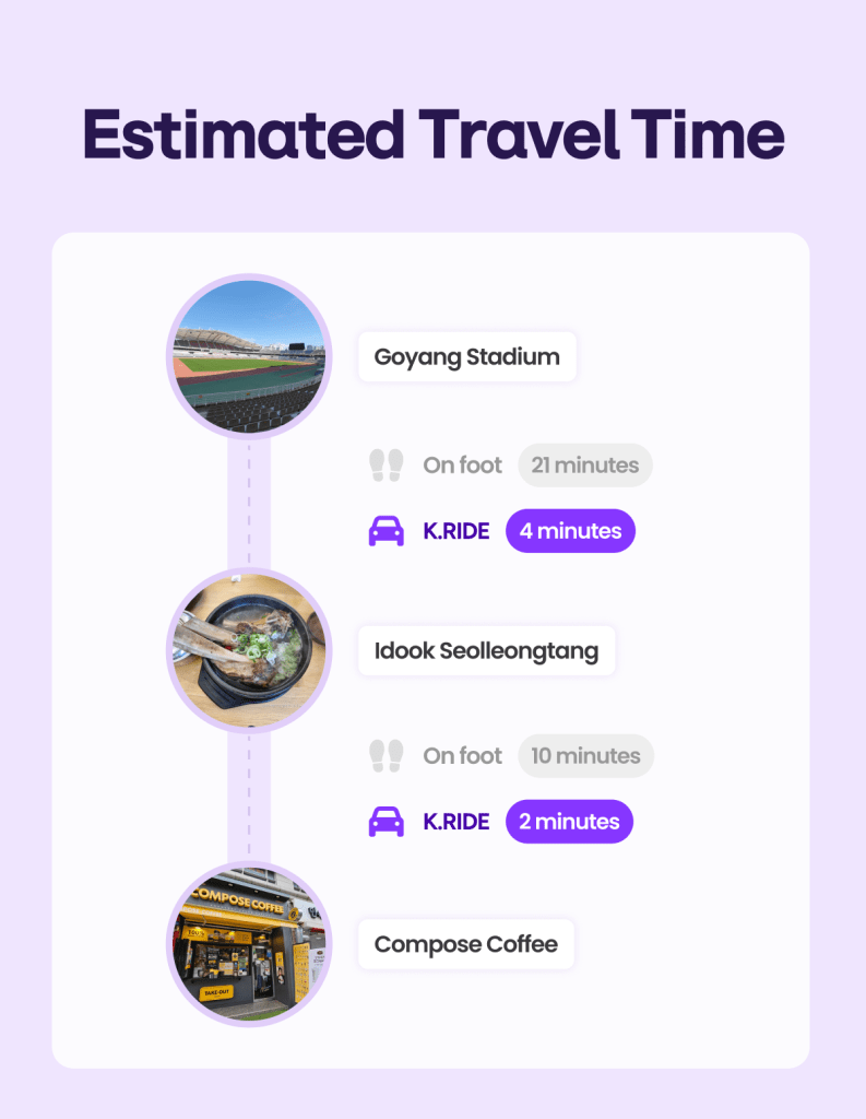 Ready to enjoy the stage of a lifetime? Just type these destinations into the K.RIDE app and head to the venue in your best condition. I hope your cheers reach the stars! 🚕✨