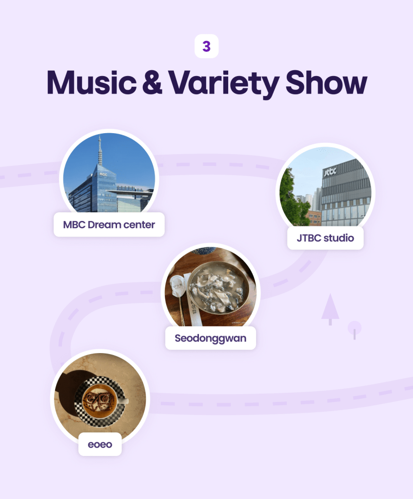One of the most iconic broadcasting hubs in Korea, where many famous music shows and dramas are produced. You might recognize the exterior from various photos of stars arriving for their recordings. It’s a landmark of K-content history! Address: 596, Hosu-ro, Ilsandong-gu, Goyang-si, Gyeonggi-do
