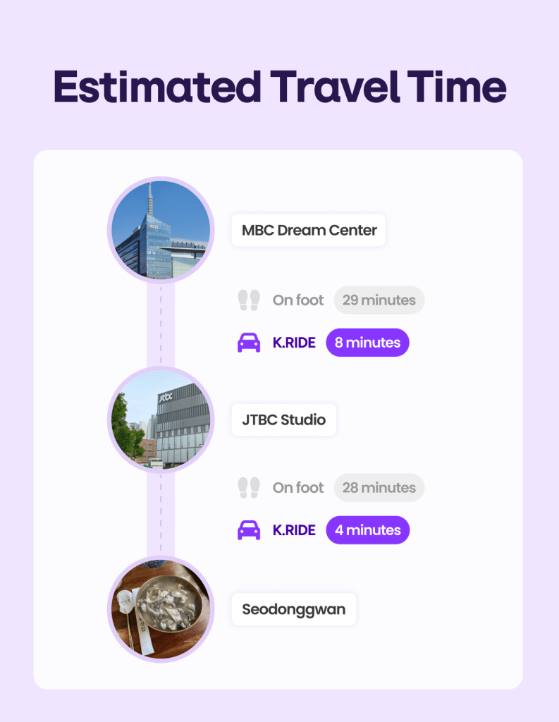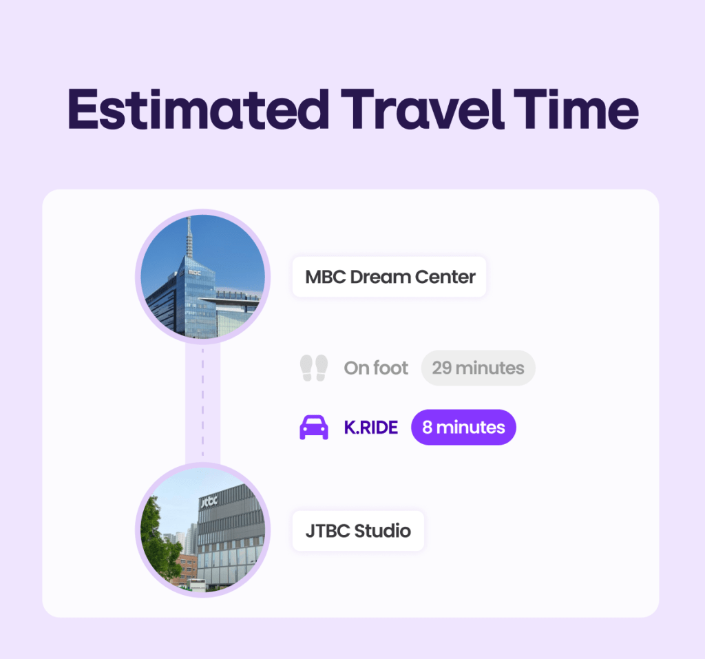 ⬆️ Tap to call K.RIDE and head to JTBC studio (JTBC 스튜디오 일산) comfortably!